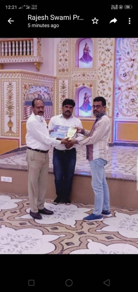 - जार कर्मवीर योद्धा के रूप में सम्मानित हुए चौमूं विधानसभा के पत्रकार…..