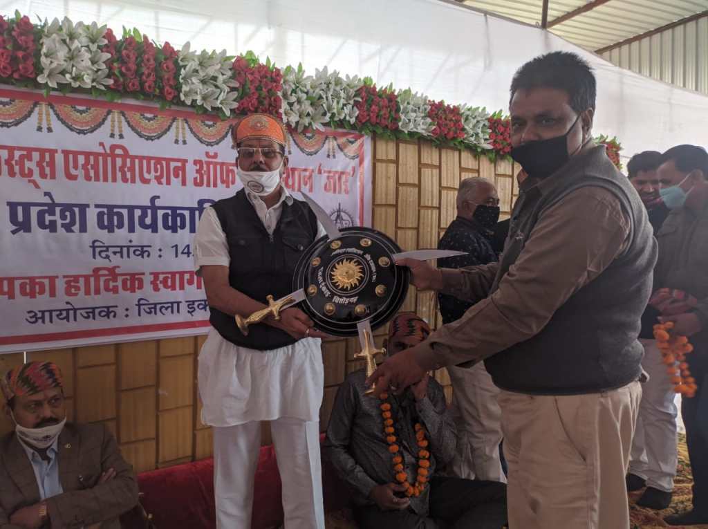 इस अवसर पर प्रदेश कार्यकारिणी तथा प्रदेश अध्यक्ष हरि बल्लभ को स्मृति चिन्ह देकर लाल, आलोक पारीक, श्याम मारू बीकानेर जार प्रदेश कार्यकारिणी का सम्मेलन चित्तौड़गढ़ अनेकों जिला इकाई कार्यकारिणी के साथियों उनके साथ आए प्रदेश कार्यकारिणी के जिलाध्यक्ष चित्तौड़गढ़ रमेश योगी सहित जार जिला इकाई के सौजन्य से सोमवार को द्वारा आगामी सत्र के लिए हरि बल्लभ मैं पदाधिकारी एवं जिला अध्यक्षों का साफा माला सहित जिले की कार्यकारिणी के पदाधिकारी मदरलैंड जयपुर देशबंधु जोशी हुआ। कार्यक्रम जार के राजस्थान प्रदेश अध्यक्ष सम्मति से मनोनीत किया गया।