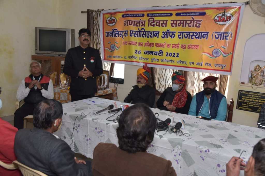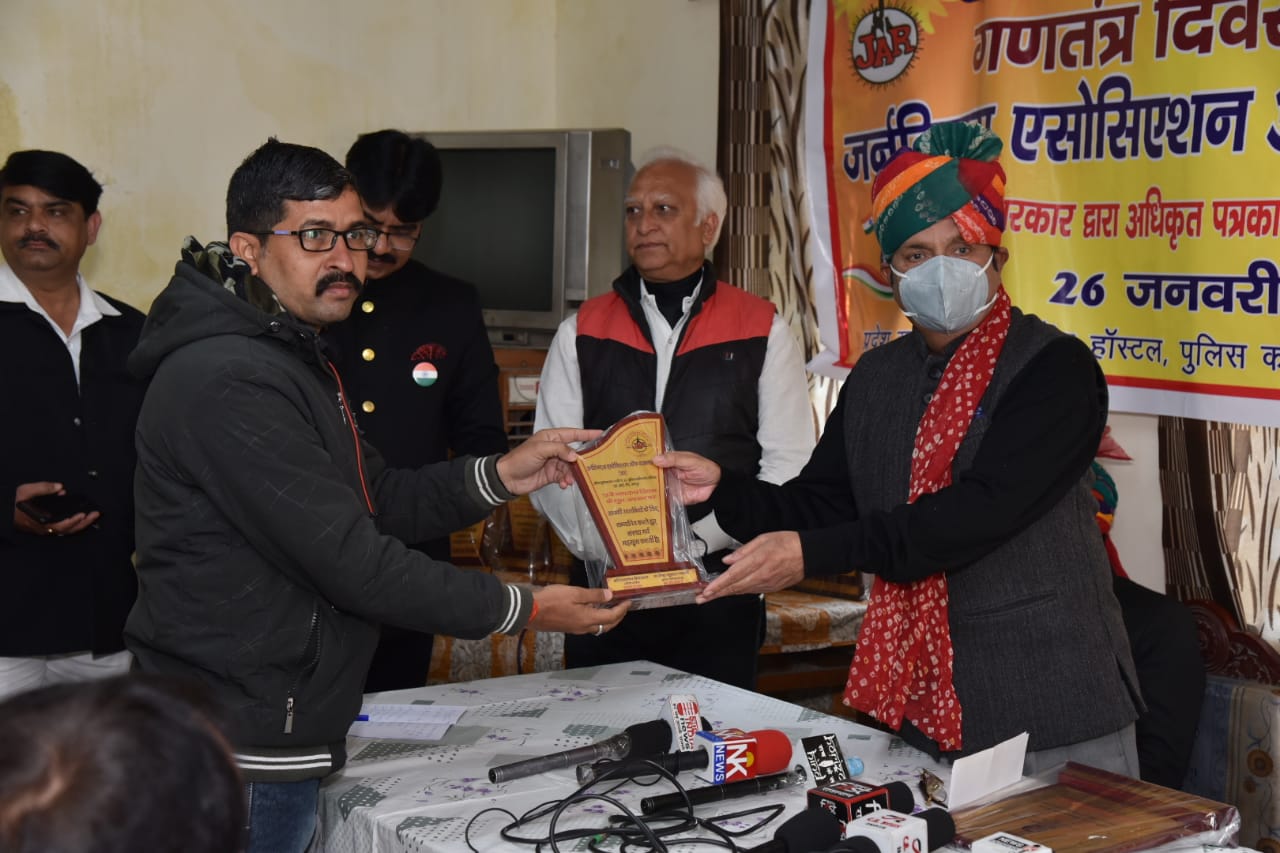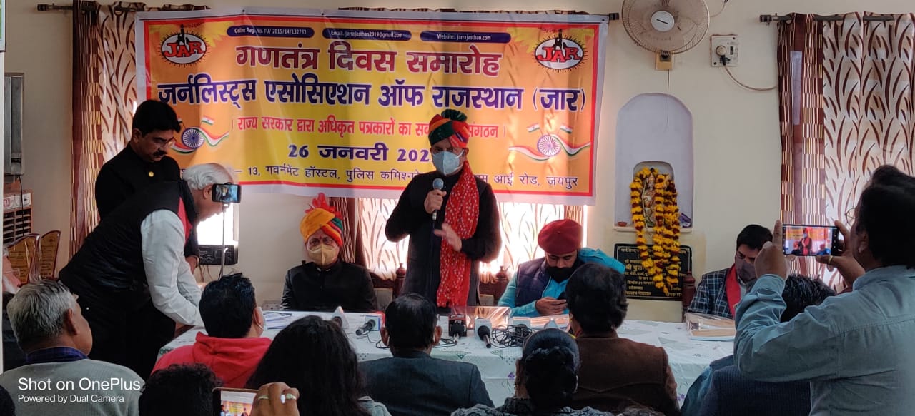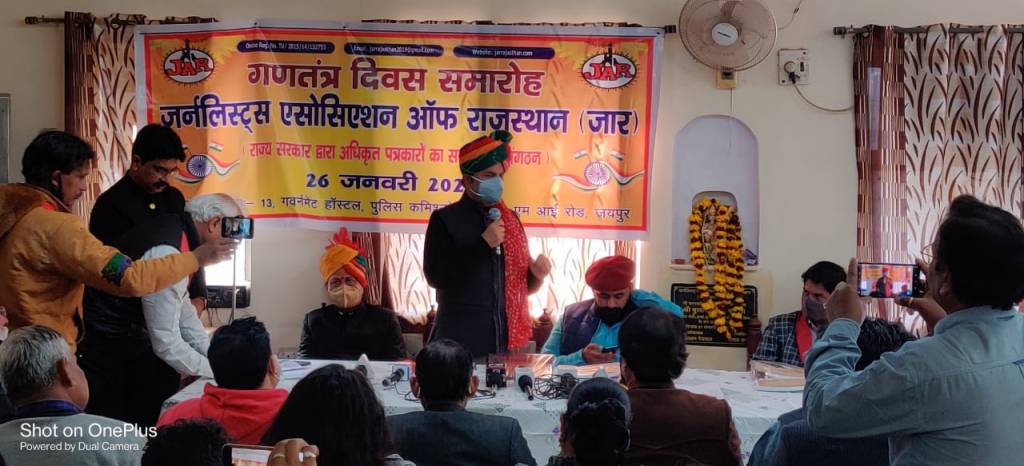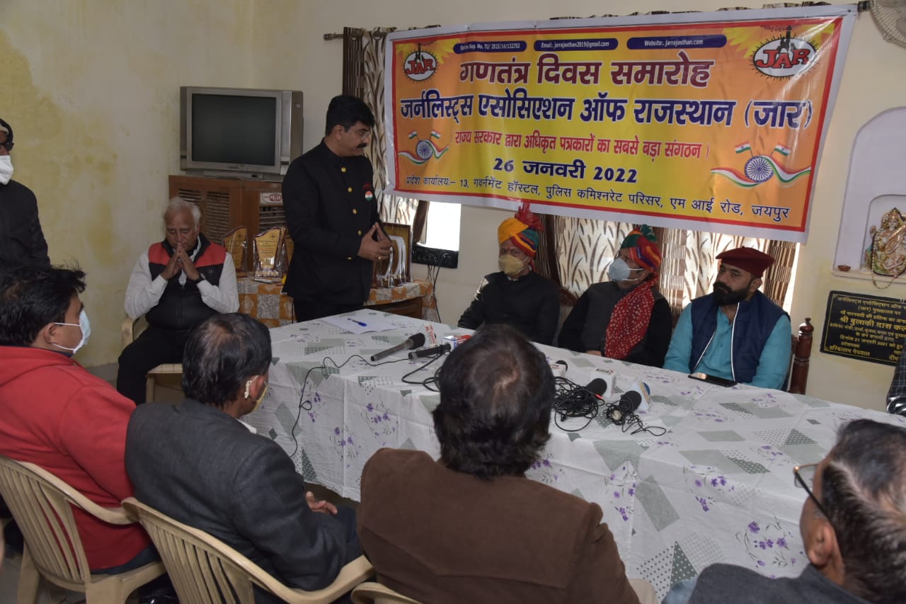 गणतंत्र दिवस की हार्दिक बधाई एवं शुभकामनाएं Posted byjarrajasthan91January 26, 2022January 26, 2022Posted inNews सभी पत्रकार साथी और जार संगठन के सदस्य 26 जनवरी 2022 को समय 9:15am पर जार मुख्यालय 13 गवर्मेंट हास्टल पुलिस कमिश्नर कार्यालय के पीछे ध्वजारोहण कार्यक्रम में सादर आमंत्रित। इस अवसर पर उत्कृष्ट प्रदर्शन करने वाले पत्रकार साथियों का सम्मान किया गया । Share this: Share on X (Opens in new window) X Share on Facebook (Opens in new window) Facebook Like Loading... Related
