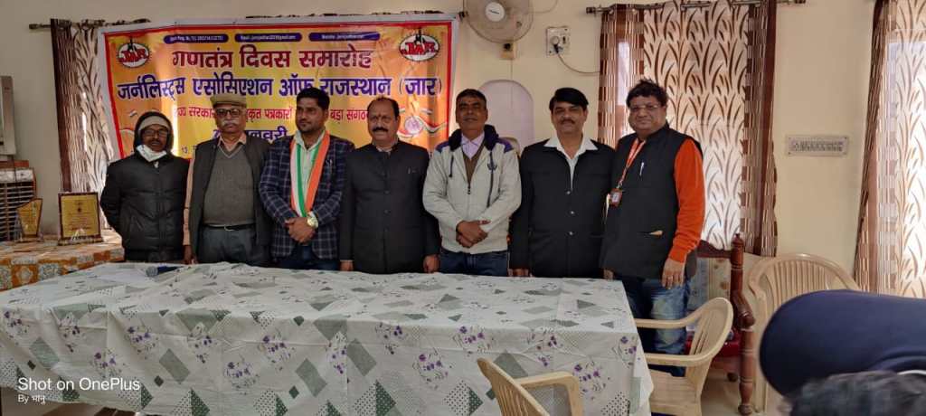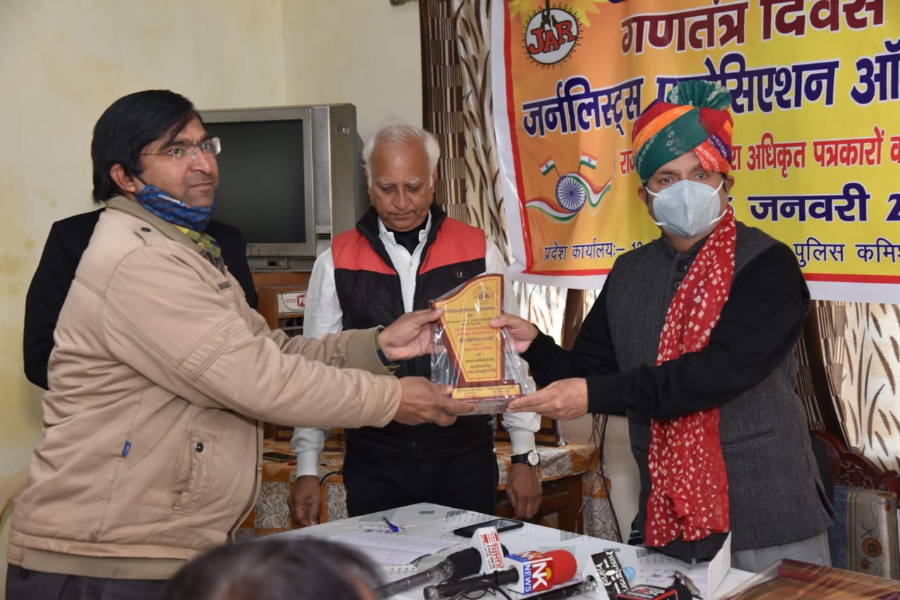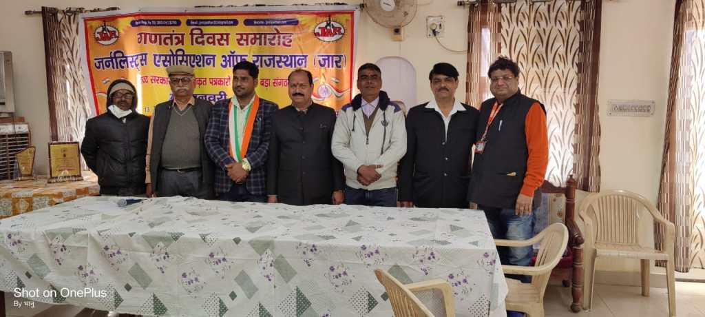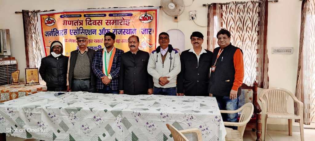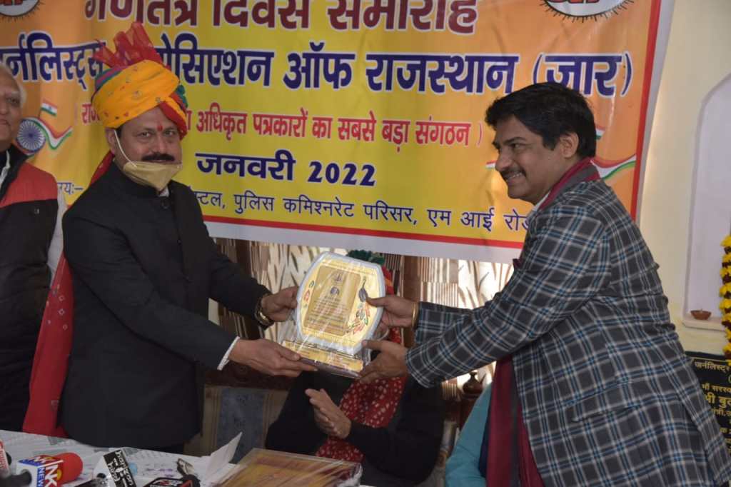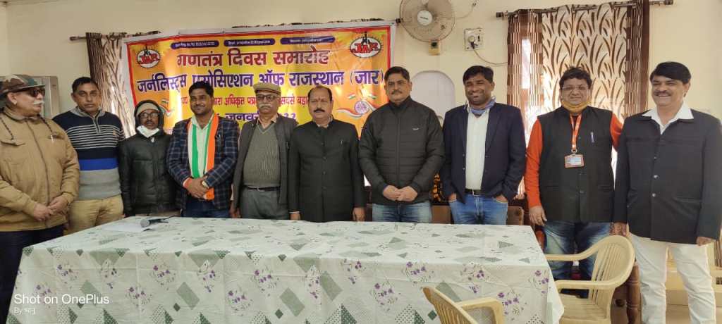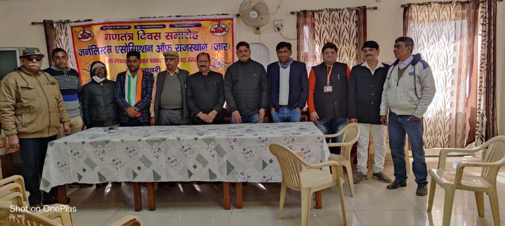 गणतंत्र दिवस की हार्दिक बधाई एवं शुभकामनाएं Posted byjarrajasthan91January 26, 2022January 26, 2022Posted inNews सभी पत्रकार साथी और जार संगठन के सदस्य 26 जनवरी 2022 को समय 9:15am पर जार मुख्यालय 13 गवर्मेंट हास्टल पुलिस कमिश्नर कार्यालय के पीछे ध्वजारोहण कार्यक्रम में सादर आमंत्रित। इस अवसर पर उत्कृष्ट प्रदर्शन करने वाले पत्रकार साथियों का सम्मान किया गया । Share this: Share on X (Opens in new window) X Share on Facebook (Opens in new window) Facebook Like Loading... Related