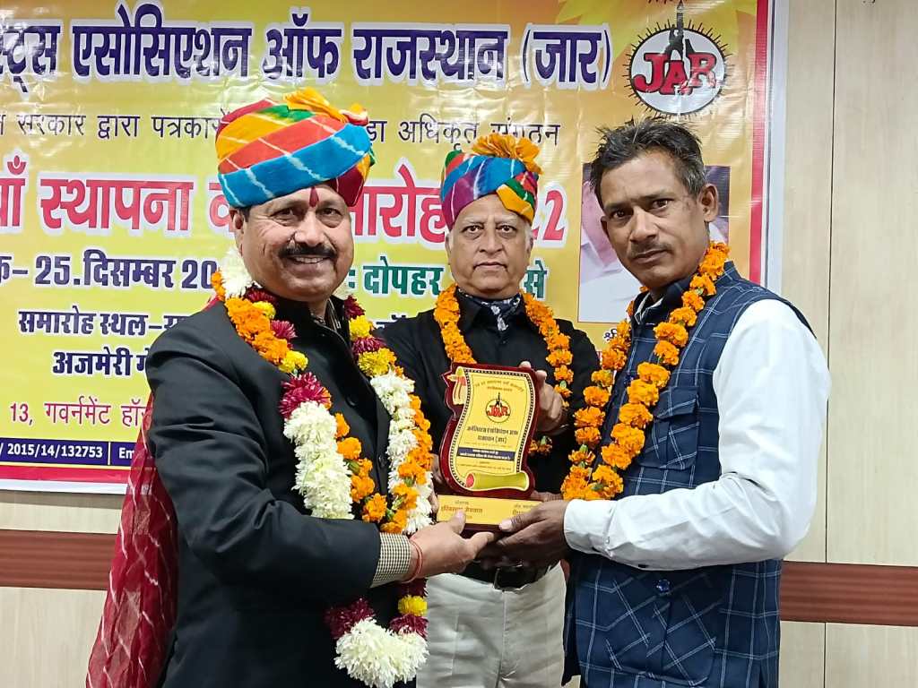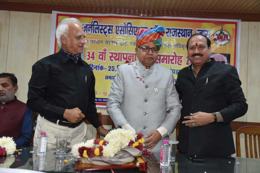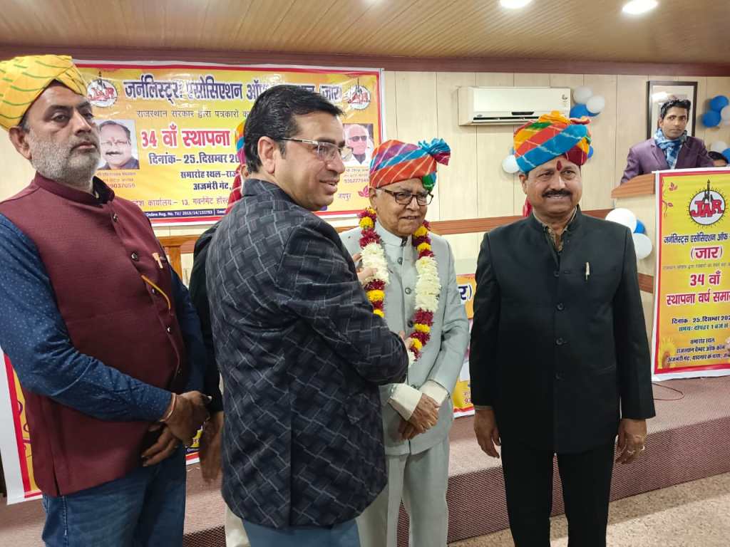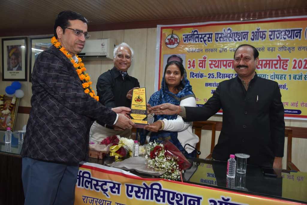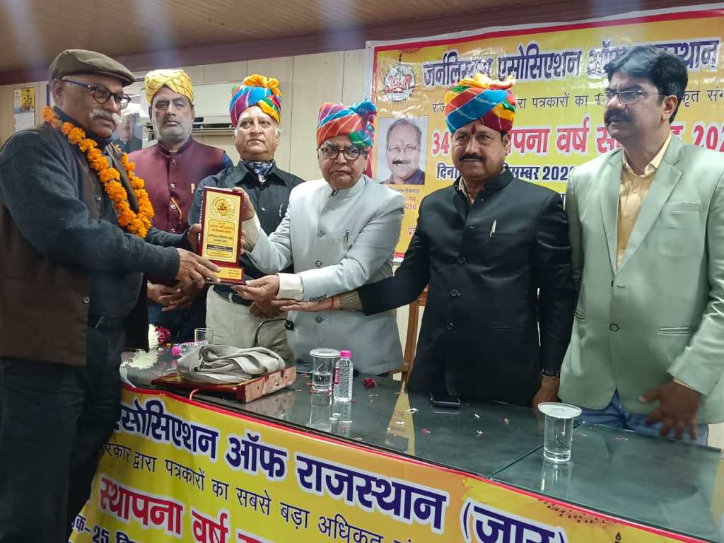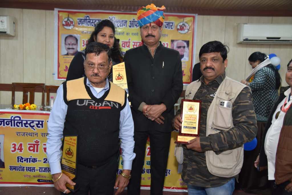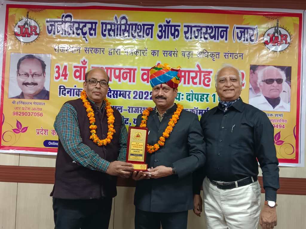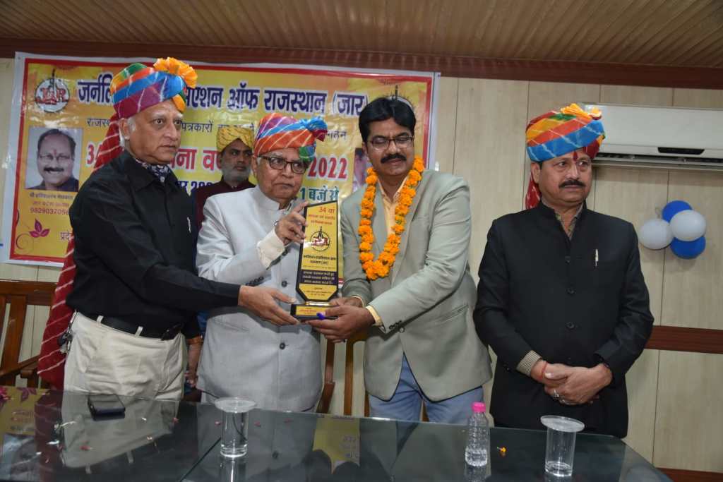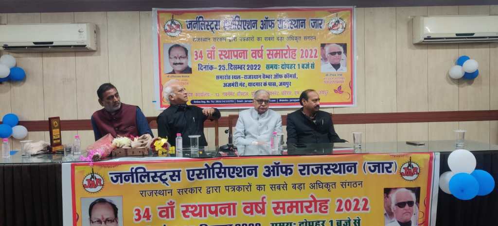 जर्नलिस्ट एसोसिएशन ऑफ राजस्थान जार के 34 वें स्थापना दिवस का भव्य समारोह गत रविवार 25 दिसम्बर को दोपहर 1.00 बजे राजस्थान चेंबर ऑफ कॉमर्स भवन, जयपुर में हर्षोल्लास के साथ मनाया गया। कार्यक्रम में मुख्य अतिथि के रूप में मुनेश गुर्जर मेयर,नगर निगम हेरिटेज,जयपुर एवं कार्यक्रम अध्यक्ष के रूप में मुख्यमंत्री के विशेष सलाहकार अधिकारी फ़ारुक़ आफ़रीदी ने शिरक़त की। जार के 34वें स्थापना दिवस के इस समारोह में लगभग 40 पत्रकारों का सम्मान किया गया। जिनमें 50 से ज्यादा समय से चलने वाले समाचार पत्र,70 वर्ष की उम्र से ज्यादा वरिष्ठ पत्रकारों एवं पत्रकारिता के क्षेत्र में कर्मठता से कार्य कर रही महिला संपादकों एवं पत्रकारों का सम्मान किया गया।