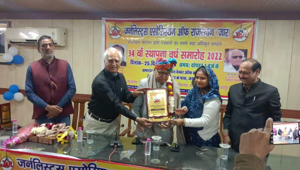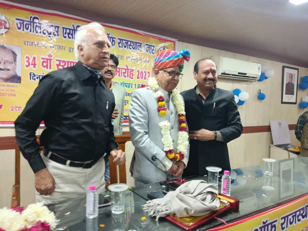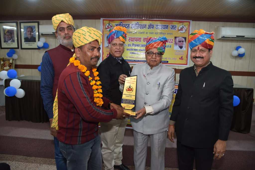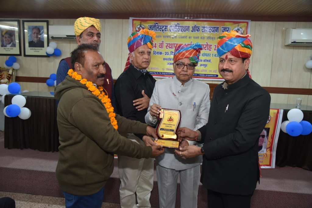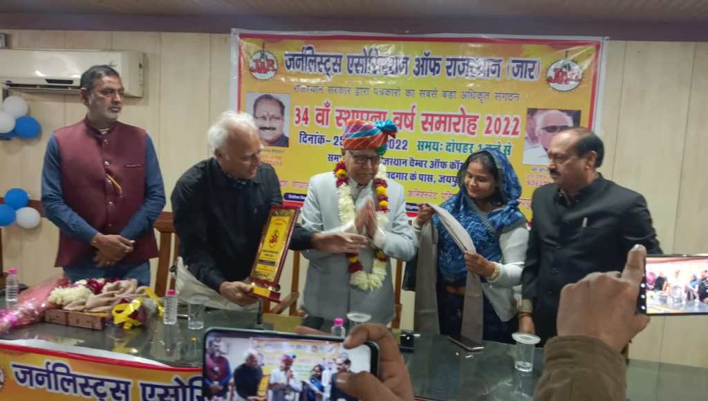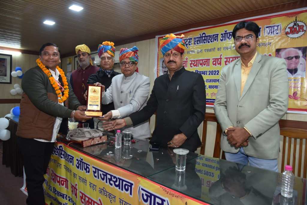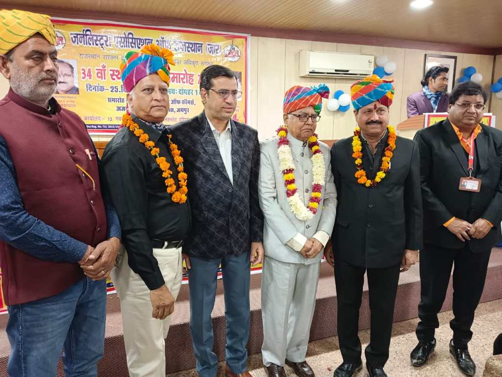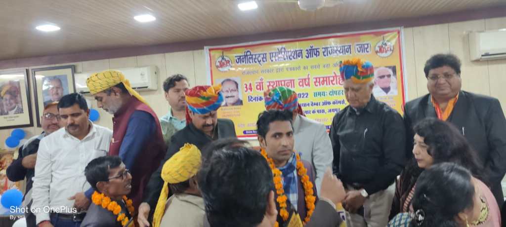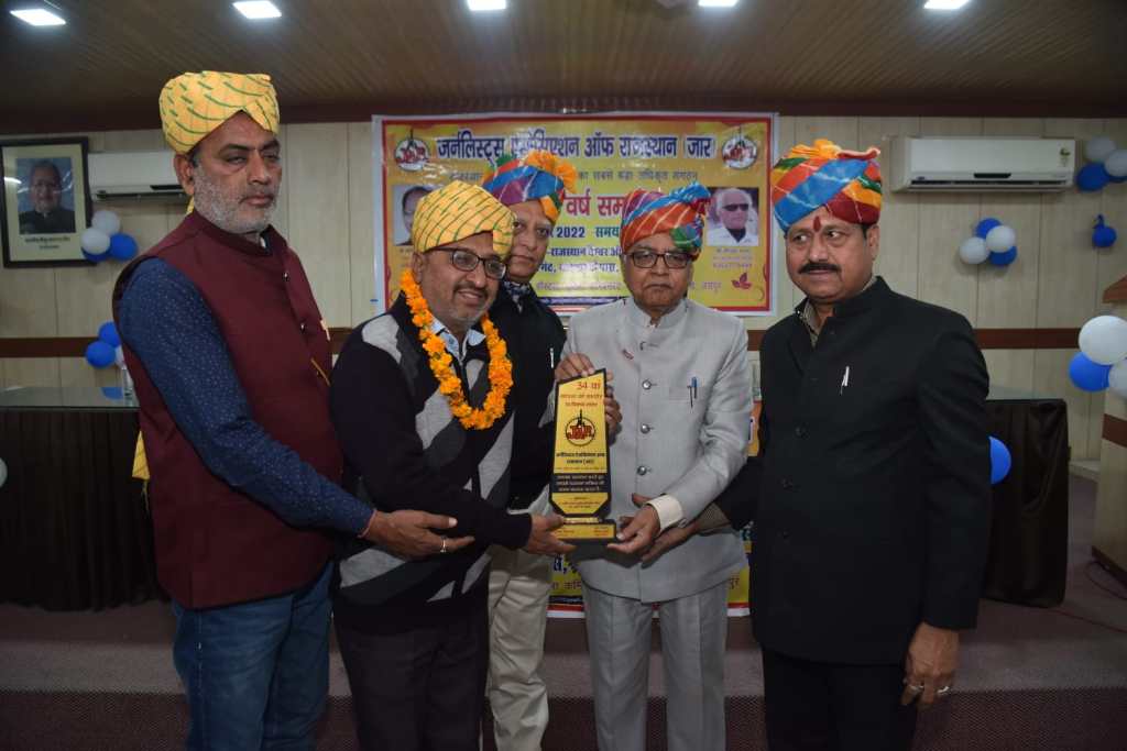 जर्नलिस्ट एसोसिएशन ऑफ राजस्थान जार के 34 वें स्थापना दिवस का भव्य समारोह गत रविवार 25 दिसम्बर को दोपहर 1.00 बजे राजस्थान चेंबर ऑफ कॉमर्स भवन, जयपुर में हर्षोल्लास के साथ मनाया गया। कार्यक्रम में मुख्य अतिथि के रूप में मुनेश गुर्जर मेयर,नगर निगम हेरिटेज,जयपुर एवं कार्यक्रम अध्यक्ष के रूप में मुख्यमंत्री के विशेष सलाहकार अधिकारी फ़ारुक़ आफ़रीदी ने शिरक़त की। जार के 34वें स्थापना दिवस के इस समारोह में लगभग 40 पत्रकारों का सम्मान किया गया। जिनमें 50 से ज्यादा समय से चलने वाले समाचार पत्र,70 वर्ष की उम्र से ज्यादा वरिष्ठ पत्रकारों एवं पत्रकारिता के क्षेत्र में कर्मठता से कार्य कर रही महिला संपादकों एवं पत्रकारों का सम्मान किया गया।