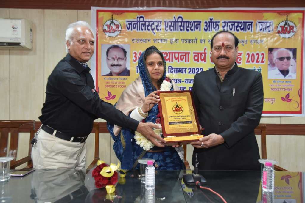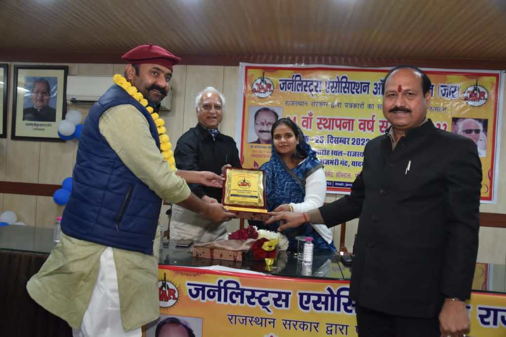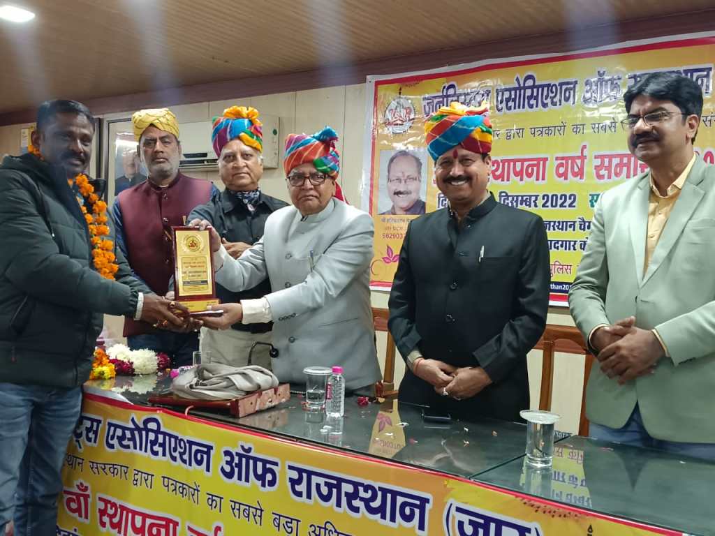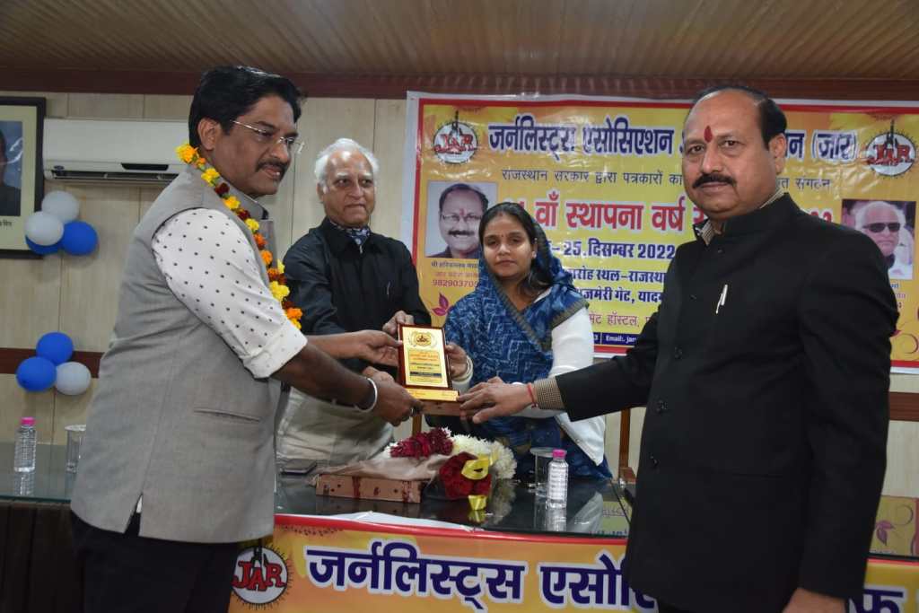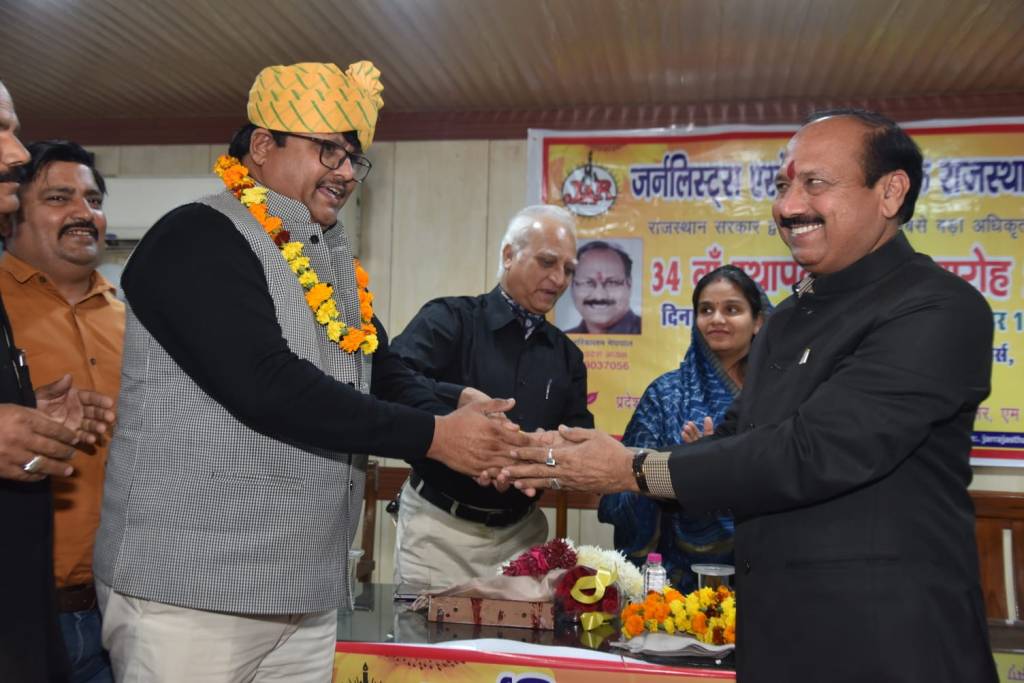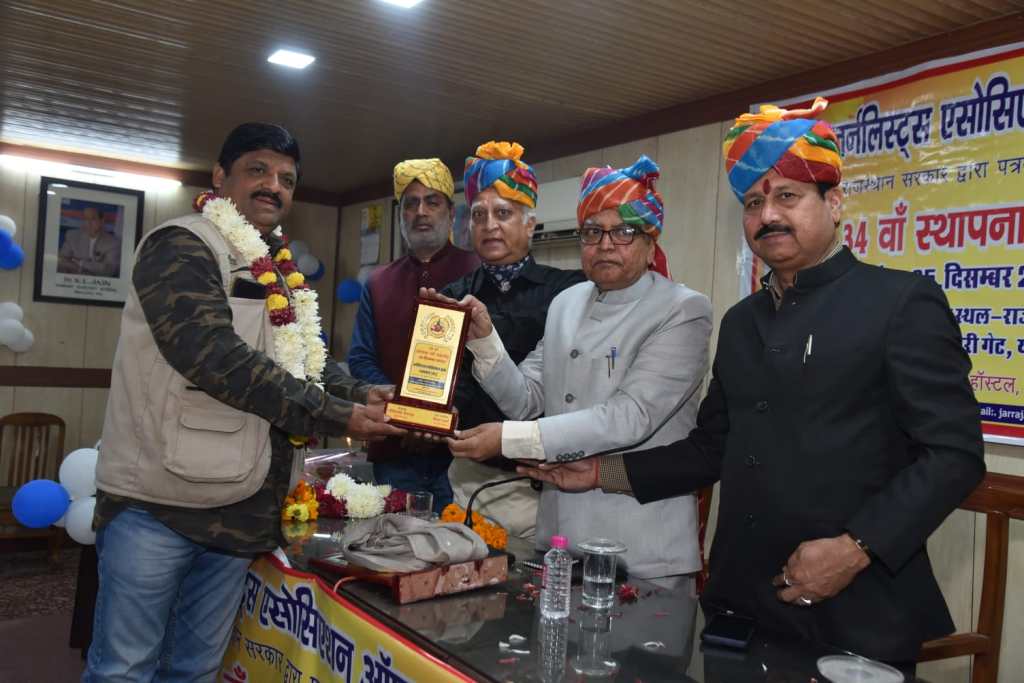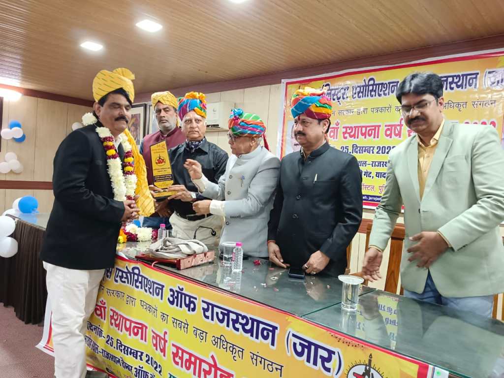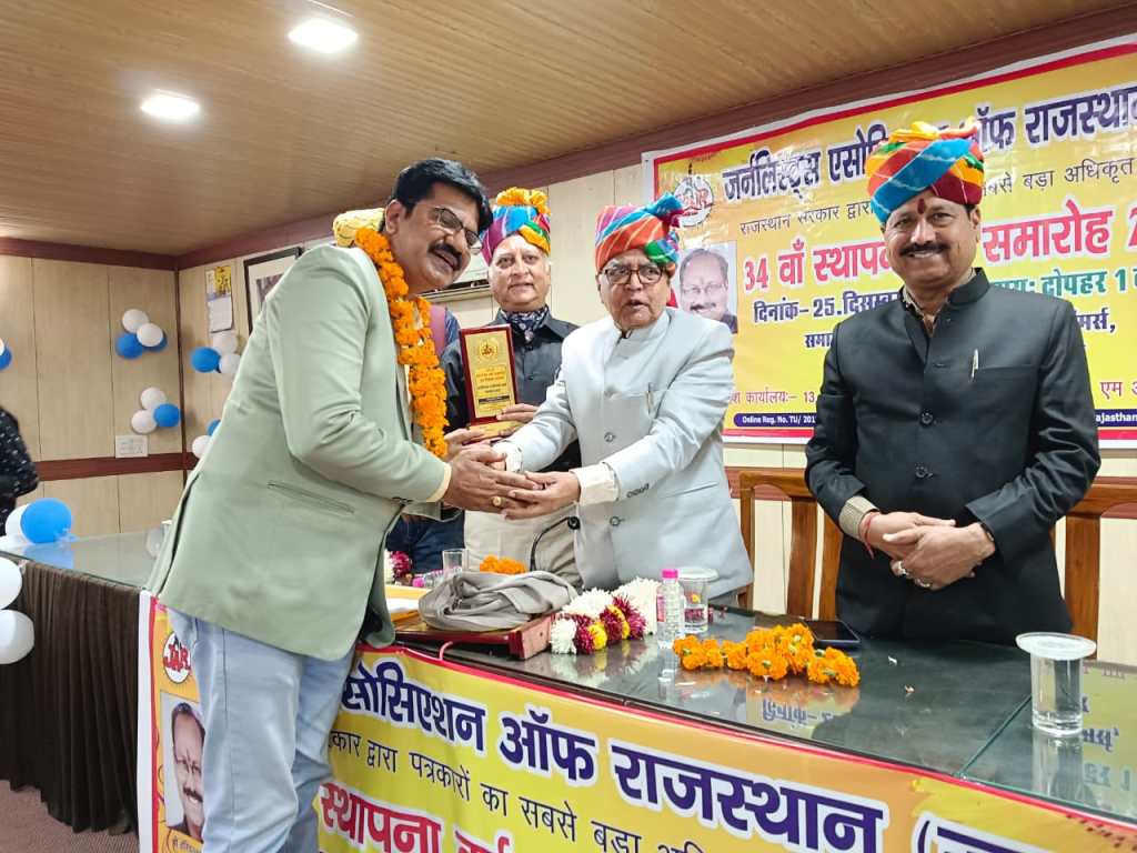 जर्नलिस्ट एसोसिएशन ऑफ राजस्थान जार के 34 वें स्थापना दिवस का भव्य समारोह गत रविवार 25 दिसम्बर को दोपहर 1.00 बजे राजस्थान चेंबर ऑफ कॉमर्स भवन, जयपुर में हर्षोल्लास के साथ मनाया गया। कार्यक्रम में मुख्य अतिथि के रूप में मुनेश गुर्जर मेयर,नगर निगम हेरिटेज,जयपुर एवं कार्यक्रम अध्यक्ष के रूप में मुख्यमंत्री के विशेष सलाहकार अधिकारी फ़ारुक़ आफ़रीदी ने शिरक़त की। जार के 34वें स्थापना दिवस के इस समारोह में लगभग 40 पत्रकारों का सम्मान किया गया। जिनमें 50 से ज्यादा समय से चलने वाले समाचार पत्र,70 वर्ष की उम्र से ज्यादा वरिष्ठ पत्रकारों एवं पत्रकारिता के क्षेत्र में कर्मठता से कार्य कर रही महिला संपादकों एवं पत्रकारों का सम्मान किया गया।