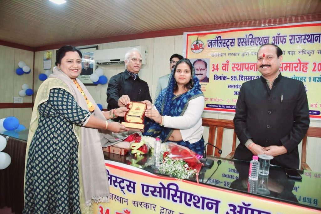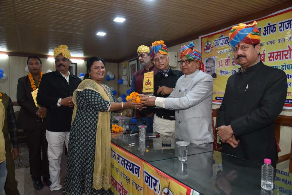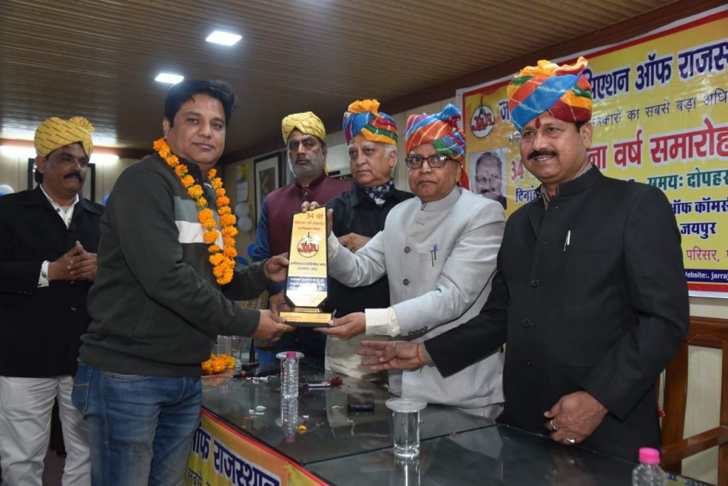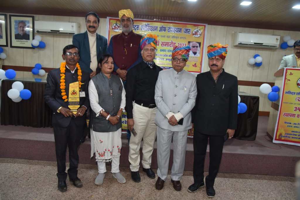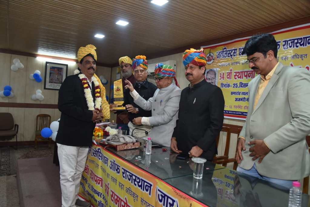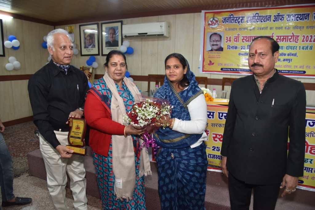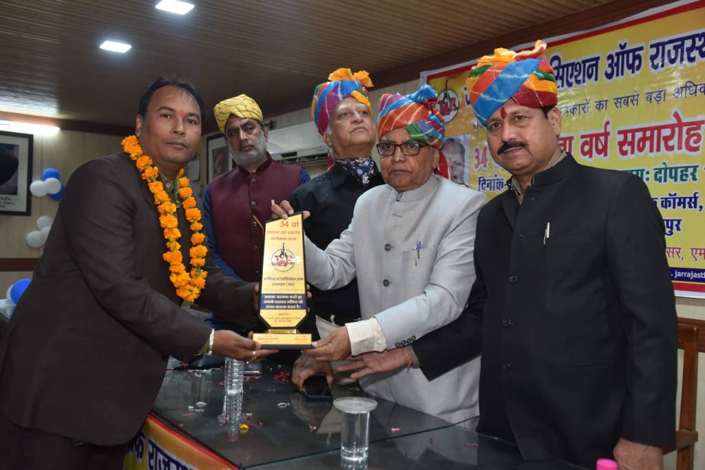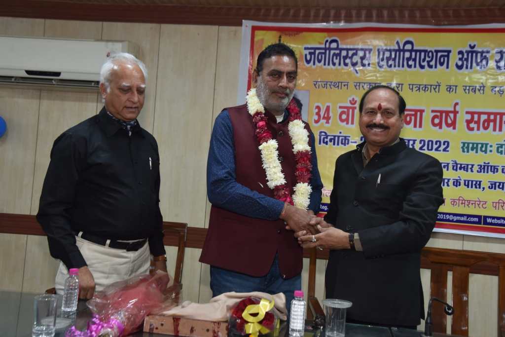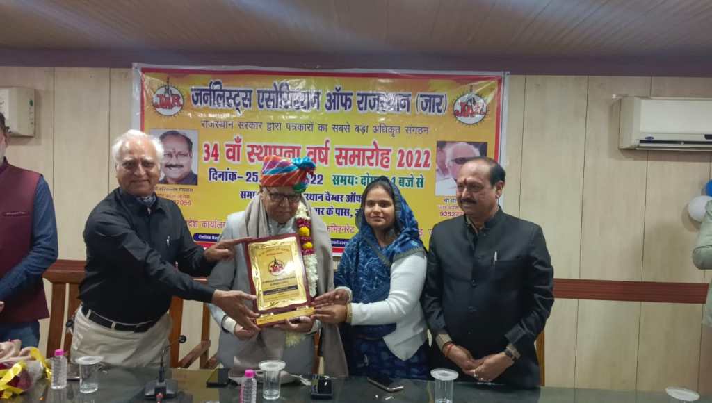 जर्नलिस्ट एसोसिएशन ऑफ राजस्थान जार के 34 वें स्थापना दिवस का भव्य समारोह गत रविवार 25 दिसम्बर को दोपहर 1.00 बजे राजस्थान चेंबर ऑफ कॉमर्स भवन, जयपुर में हर्षोल्लास के साथ मनाया गया। कार्यक्रम में मुख्य अतिथि के रूप में मुनेश गुर्जर मेयर,नगर निगम हेरिटेज,जयपुर एवं कार्यक्रम अध्यक्ष के रूप में मुख्यमंत्री के विशेष सलाहकार अधिकारी फ़ारुक़ आफ़रीदी ने शिरक़त की। जार के 34वें स्थापना दिवस के इस समारोह में लगभग 40 पत्रकारों का सम्मान किया गया। जिनमें 50 से ज्यादा समय से चलने वाले समाचार पत्र,70 वर्ष की उम्र से ज्यादा वरिष्ठ पत्रकारों एवं पत्रकारिता के क्षेत्र में कर्मठता से कार्य कर रही महिला संपादकों एवं पत्रकारों का सम्मान किया गया।
