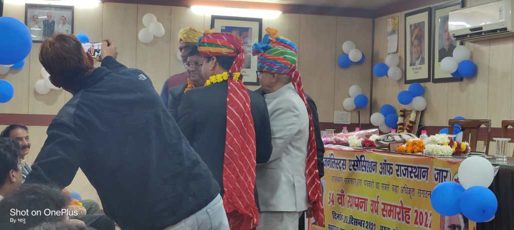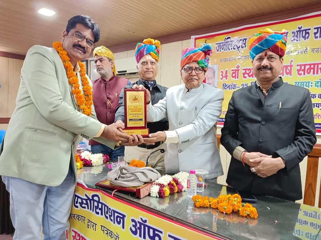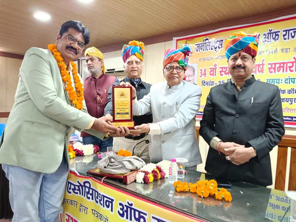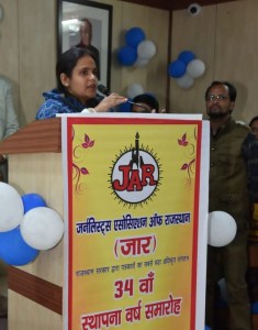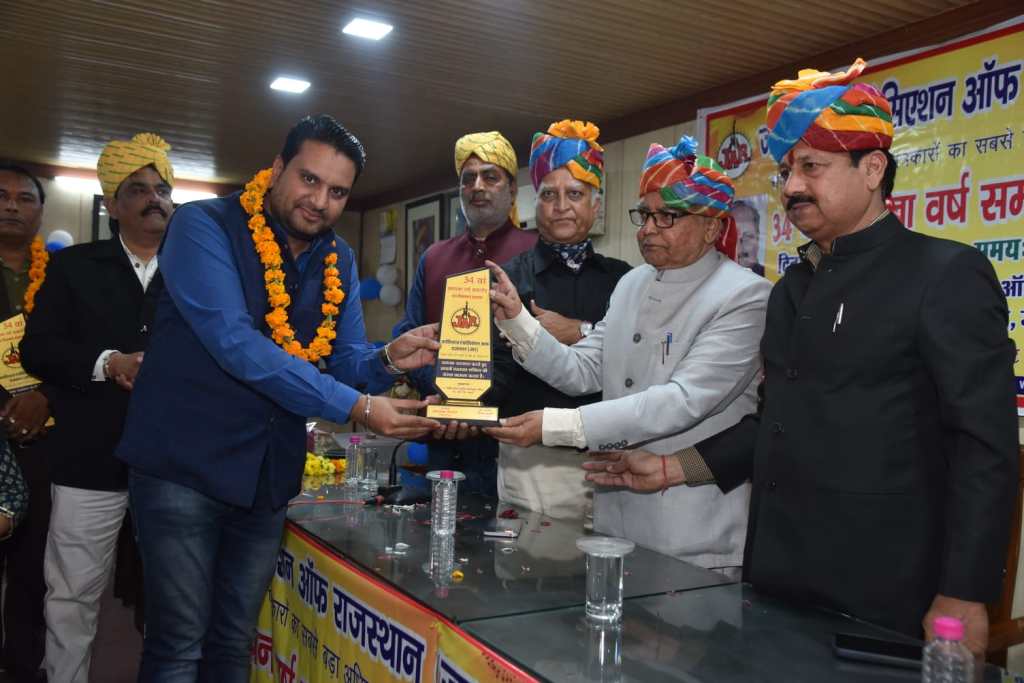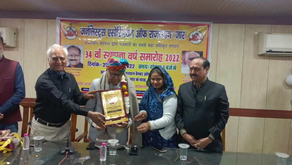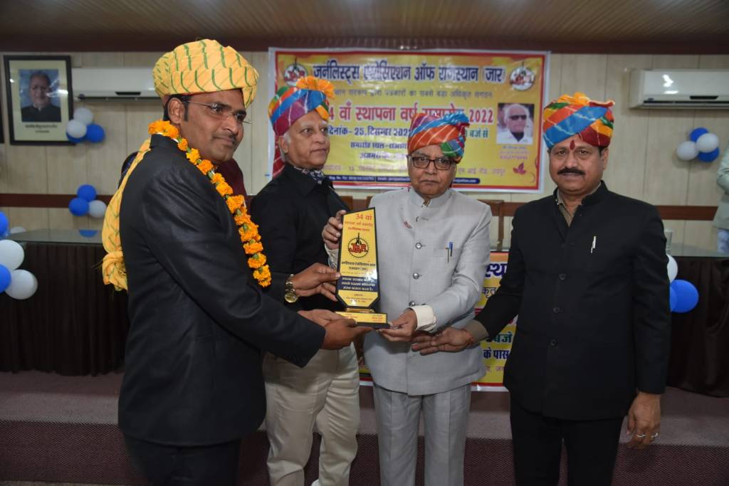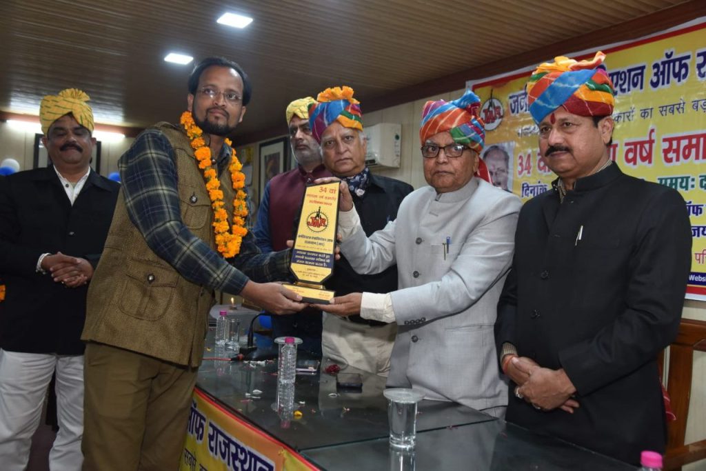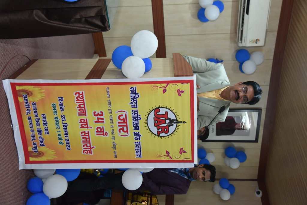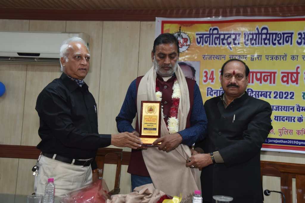 जर्नलिस्ट एसोसिएशन ऑफ राजस्थान जार के 34 वें स्थापना दिवस का भव्य समारोह गत रविवार 25 दिसम्बर को दोपहर 1.00 बजे राजस्थान चेंबर ऑफ कॉमर्स भवन, जयपुर में हर्षोल्लास के साथ मनाया गया। कार्यक्रम में मुख्य अतिथि के रूप में मुनेश गुर्जर मेयर,नगर निगम हेरिटेज,जयपुर एवं कार्यक्रम अध्यक्ष के रूप में मुख्यमंत्री के विशेष सलाहकार अधिकारी फ़ारुक़ आफ़रीदी ने शिरक़त की। जार के 34वें स्थापना दिवस के इस समारोह में लगभग 40 पत्रकारों का सम्मान किया गया। जिनमें 50 से ज्यादा समय से चलने वाले समाचार पत्र,70 वर्ष की उम्र से ज्यादा वरिष्ठ पत्रकारों एवं पत्रकारिता के क्षेत्र में कर्मठता से कार्य कर रही महिला संपादकों एवं पत्रकारों का सम्मान किया गया।