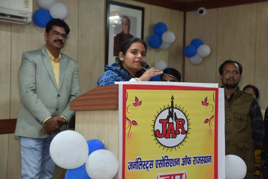 मुख्य अतिथि मुनेश गुर्ज़र ने कहा कि वे जार परिवार की सदस्य हैं और हर संघर्ष में वे पत्रकारों के साथ हैं। देश या राज्य की किसी भी उपलब्धि और कमी को उजागर करने का कार्य पत्रकार ही करते हैं और देश की दिशा व दशा तय करने में इनकी महत्वपूर्ण भूमिका होती है।
