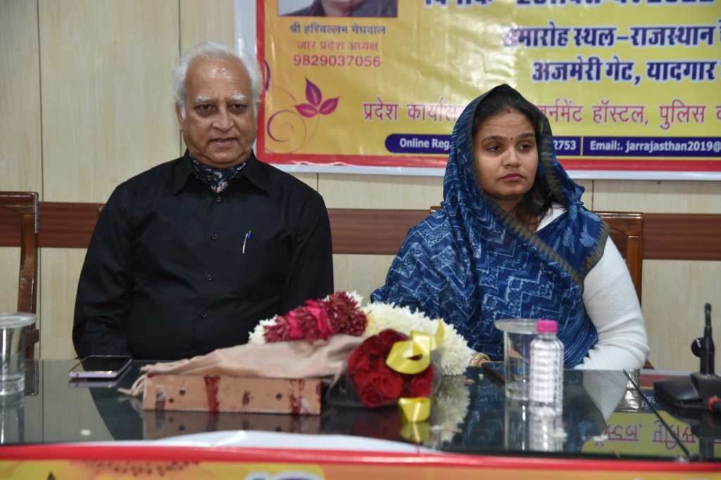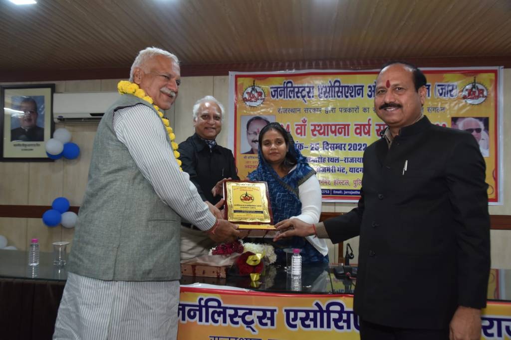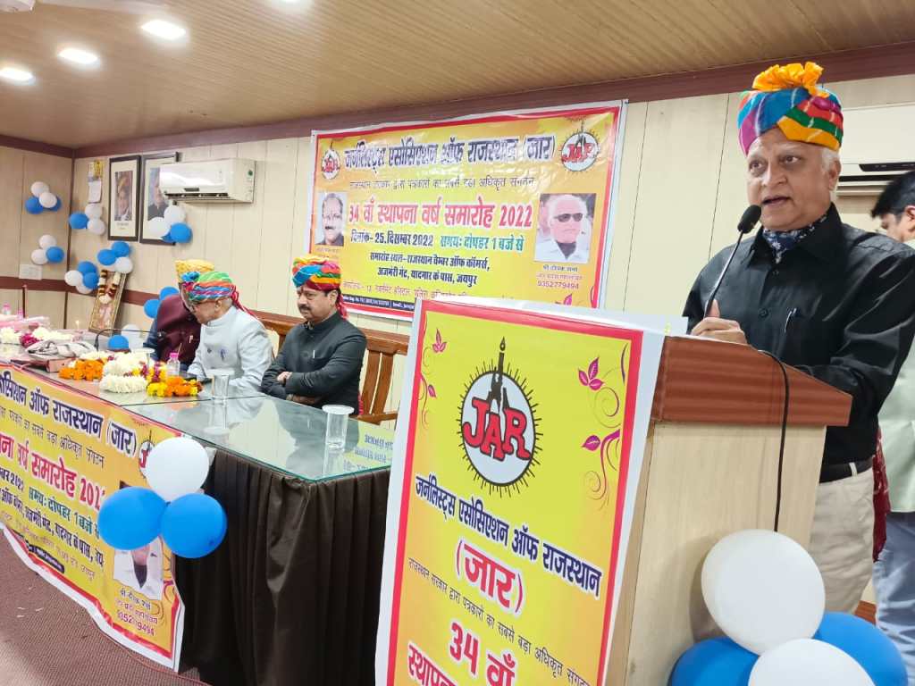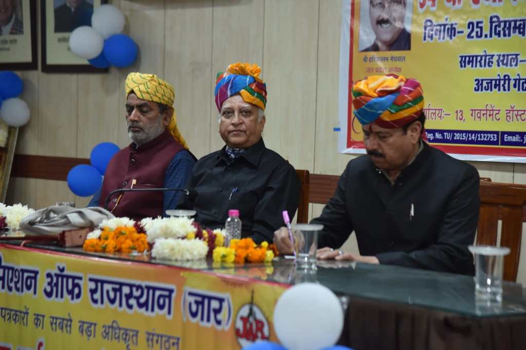 इसी अवसर पर जार के प्रदेशाध्यक्ष हरिबल्लभ मेघवाल ने पत्रकारों के संबंध में महत्वपूर्ण सुझाव और उनकी समस्याओं को मंच पर रखा साथ ही कहा कि पत्रकार संविधान का चौथा स्तम्भ है इसकी सुरक्षा व आवश्यकता दोनों पर सरकार को गहनता से सोचने की आवश्यकता है। पत्रकार की गरिमा की रक्षा व सुरक्षा राज्य नहीं बल्कि देश के लिए एक महत्वपूर्ण मुद्दा है।