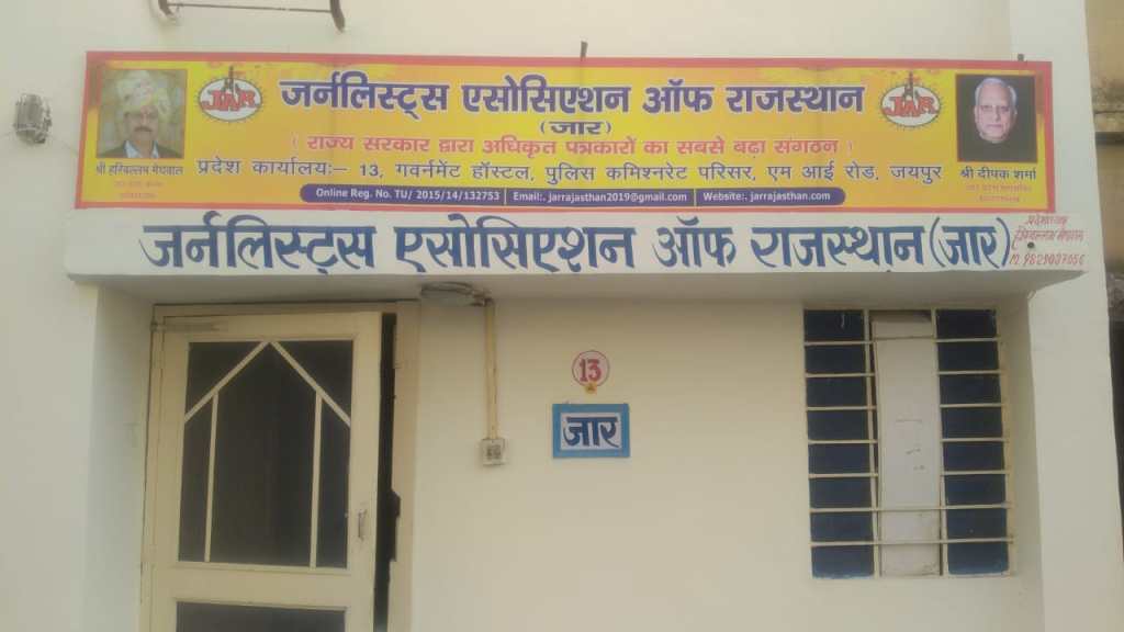 जर्नलिस्ट एसोसिएशन ऑफ राजस्थान की जयपुर जिला इकाई द्वारा आज जार मुख्यालय फ्लैट नं 13 गवर्नमेंट होस्टल पुलिस कमिश्नरेट परिसर जयपुर में पत्रकारों की मीटिंग का आयोजन किया गया । इस अवसर पर लगभग 50 से ज्यादा पत्रकारों ने अपने विचार और सुझाव का मंथन किया । इन सबमें सबसे बड़ा मुद्दा यह रहा किContinue reading “गैर अधिस्वीकृत पत्रकारों को भी मिले सरकारी राहत -दीपक शर्मा महासचिव प्रदेश,जार”